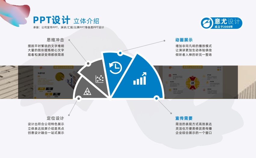 蘇州意尤文化傳播有限公司是一家有著多年廣告設(shè)計(jì)經(jīng)驗(yàn)的蘇州知名廣告企業(yè) 主要業(yè)務(wù)有蘇州PPT設(shè)計(jì)、蘇州產(chǎn)品PPT設(shè)計(jì)、蘇州企業(yè)PPT設(shè)計(jì)、蘇州會議PPT設(shè)計(jì)、蘇州項(xiàng)目PPT設(shè)計(jì)、企業(yè)VI設(shè)計(jì)、設(shè)計(jì)印刷宣傳冊/樣本/單頁/名片等 自2007年成立以來,蘇州意尤廣告公司與蘇州及蘇州各市的幾百家中外企業(yè)進(jìn)行了廣告設(shè)計(jì)合作,經(jīng)過多年發(fā)展公司已形成了以企業(yè)PPT設(shè)計(jì)、企業(yè)VI設(shè)計(jì),廣告設(shè)計(jì),廣告印刷,樣本設(shè)計(jì),宣傳冊設(shè)計(jì),名片印刷,菜譜制作,單頁,宣傳單等一批特長業(yè)務(wù),相信在各位新老客戶的關(guān)心下,本公司會得到更大的發(fā)展,同時為客戶的發(fā)展宣傳保駕護(hù)航。